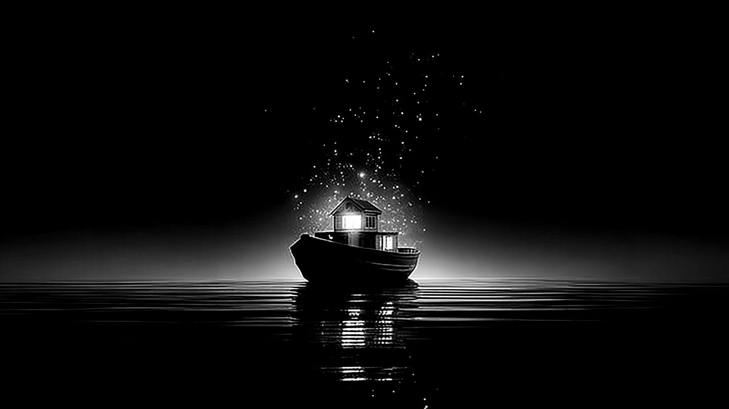 Dnotea lightship?Jan 24, 2026Sharethe universe is in your boatdoesn’t mean you won’t face storms.it means your boat will never sink. after all,are we not all in the same boat?a ship filled with light?a lightship?PreviousNext