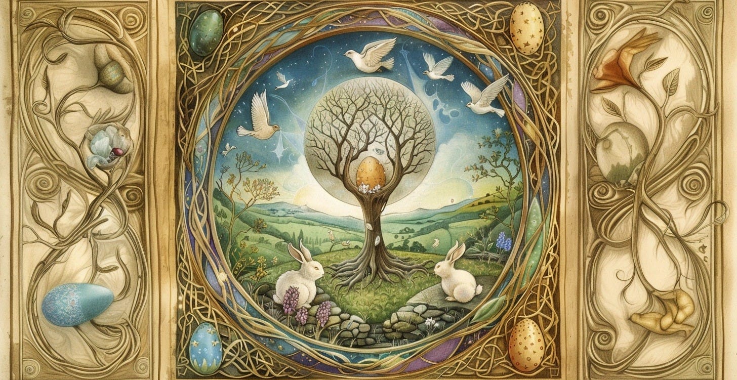 Easter. From Eostrae, the Anglo-Saxon goddess of spring and fertility, or Norse Eostur, Eastur, or Ostara, which meant “the season of the growing sun” or “the season of new birth.” Nature; eggs, bunnies. A change of season. A change of cycle. The arisal of conscious awareness
