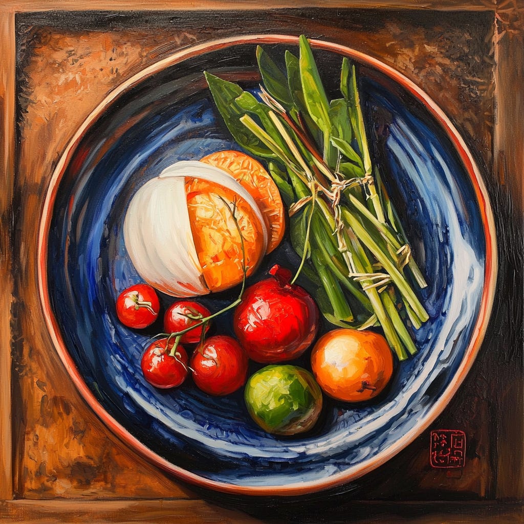 Curiosity📚 The concept of Hara Hachi Bu originates from Okinawa, Japan, one of the world-renowned Blue Zones where people live significantly longer and healthier lives. This age-old practice from Okinawa isn't just about moderation; it's a celebration of life's flavors and a path to enhanced well-being through mindful eating. In general, the meals are smaller, more frequent, and packed with nutrients from whole foods, fruits, vegetables, and grains. Research supports that this mindful eating practice can significantly lower the risk of a heart disease and extend lifespan.